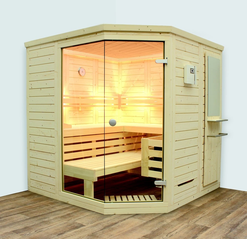 Die Massivholzsaunen Saari stehen für pures Saunavergnügen. Mit der Saari- Komfort lässt sich dieses noch intensivieren. Die Freude beginnt schon beim Betrachten. Durch ein gestaltendes Regalelement mit Spiegel und Ablage fügt sich die Saari Komfort harmonisch in jeden Raum. Ganz wie ein gutes Möbelstück.